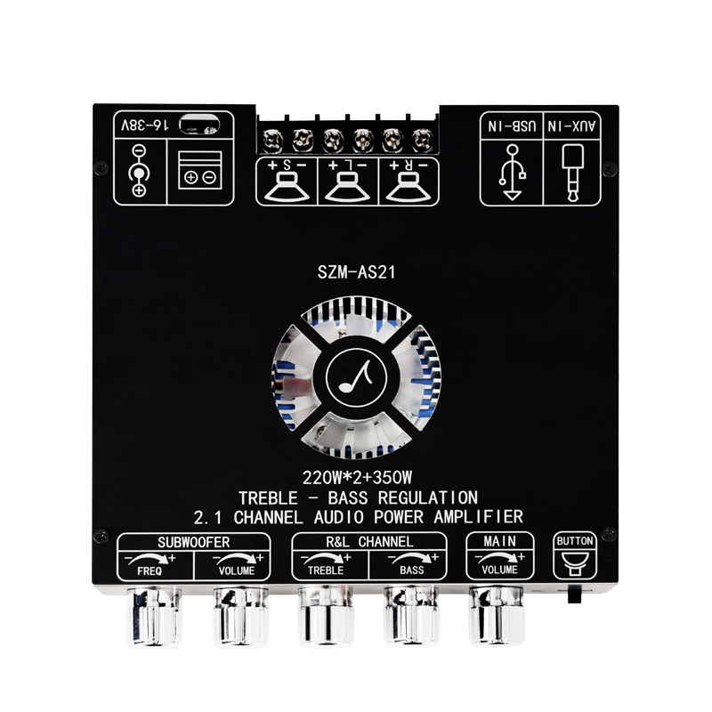Compatible speaker: left and right channels 30-220W, 3-8Ω; subwoofer 30-350W, 2-8Ω