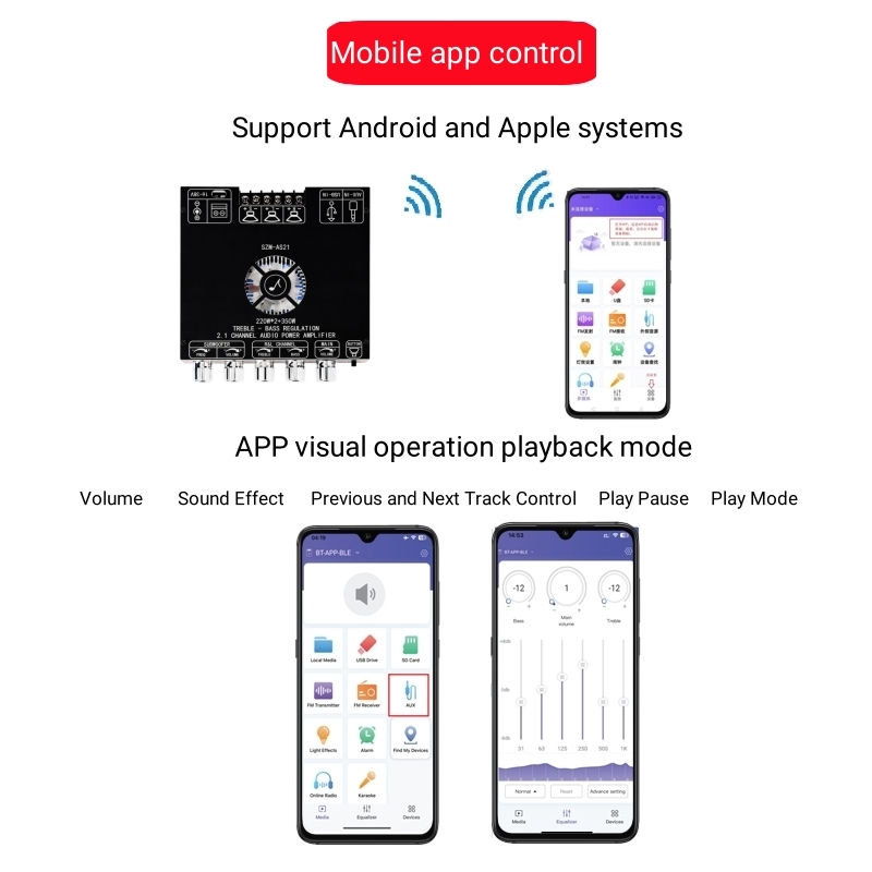 Sound Input: BT + Aux + USB + APP