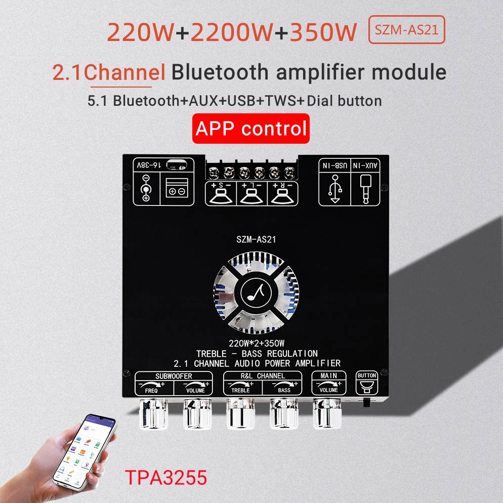 ZK-AS21 2.1 Channel 220WX2+350W TPA3255 Bluetooth Digital Power Amplifier Board Module